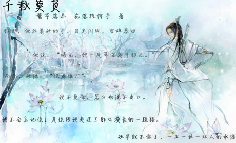 “你先走!”她一把推开静,大声喊道,然后向另一个方向跑去。 “以后,这个,你只许唱给我听。”他看着他,一脸的邪笑,而他低头不语。 “我只求你不要伤害我的孩子。”她跪在地上苦苦哀求,泪水混着血一并流下,最终闭上了眼睛。 “是你先背叛了我。”她恨恨的盯着他。他不说话,毕竟襁褓里的孩子是无辜的。 “我欠了他一条命,终有一天,这债是要还的。”她的声音沙哑,没了以前的光华。 “相忘于江湖,总比相隔阴阳要好。”他终归还是放不下手中的一切。 “时隔多年,我终于可以理解你们。你们,在九泉之下可以安心了。”她看了一眼眼前的坟墓,转身离去。 求评论~求收藏~求票票~各种求~打滚求~~
